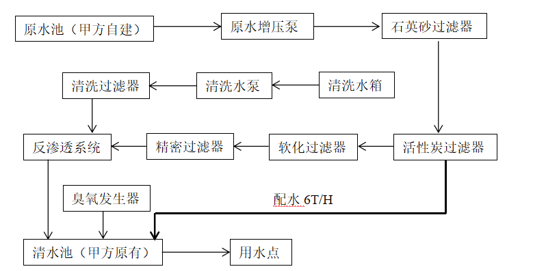 本工藝方案是根據(jù)用戶要求,本著工藝設(shè)備先進(jìn)、可靠、最大限度地提高系統(tǒng)的性能價(jià)格比的原則進(jìn)行設(shè)計(jì)。系統(tǒng)采用“原水系統(tǒng)+預(yù)處理系統(tǒng)+反滲透膜系統(tǒng)+配水系統(tǒng)+消毒系統(tǒng)為一體的全自動(dòng)成套設(shè)備”水處理工藝,該系統(tǒng)能夠保證需方各類品質(zhì)用水需要,方案設(shè)計(jì)合理、運(yùn)行穩(wěn)定、并已在多項(xiàng)類似工程中得到應(yīng)用及檢驗(yàn)。
