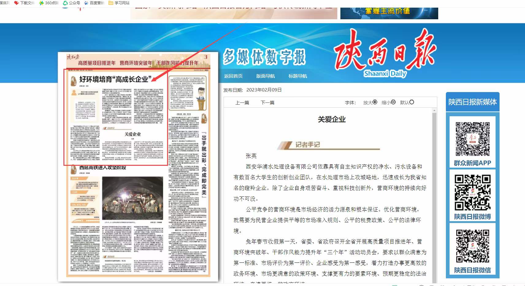 在2023年2月9日陜西日?qǐng)?bào)第3版中:好環(huán)境培育“高成長(zhǎng)企業(yè)”介紹了我公司特殊時(shí)期